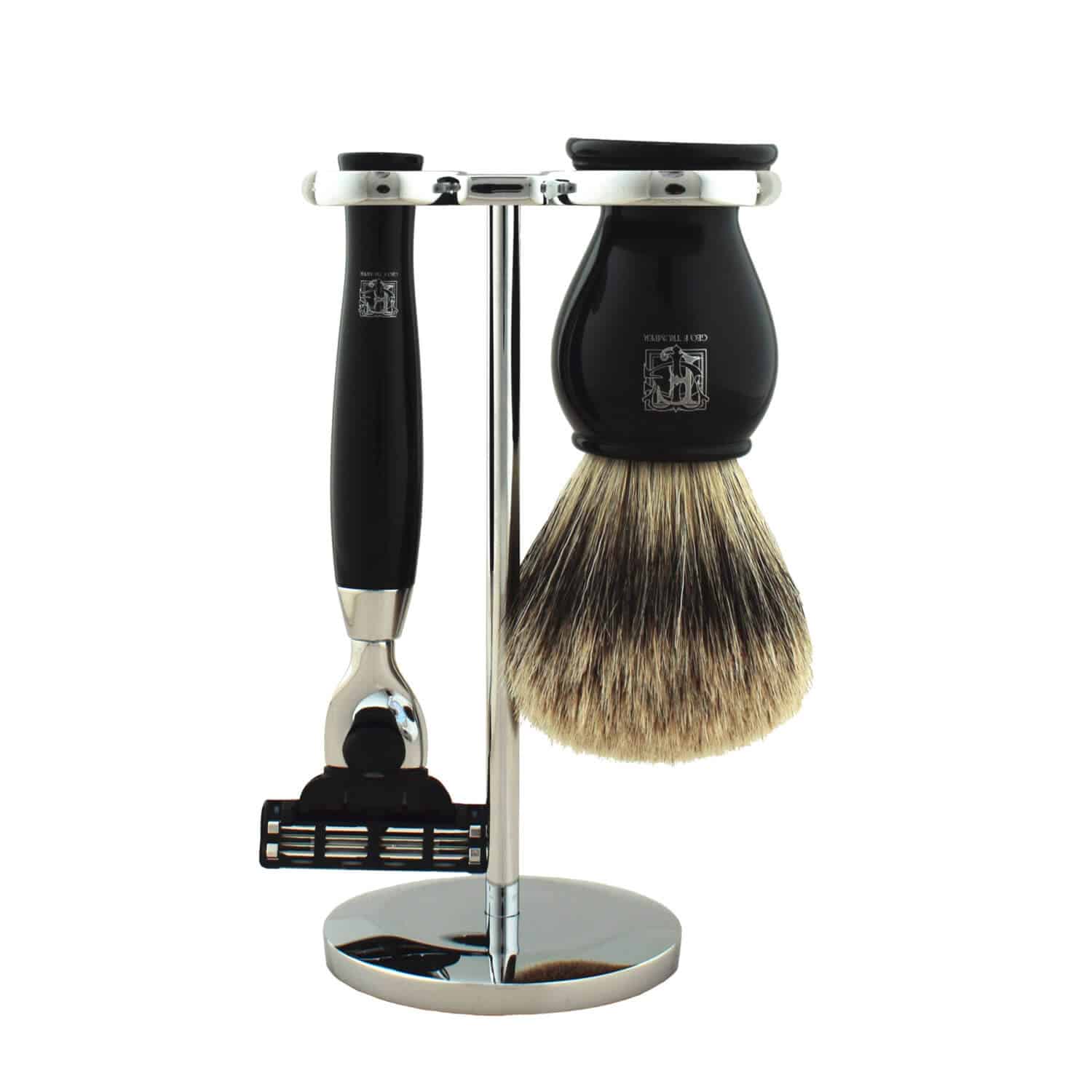 Our PBS Shaving Stand combined with a brush and razor of your choice to create a stylish and elegant Black PB Shaving Set.