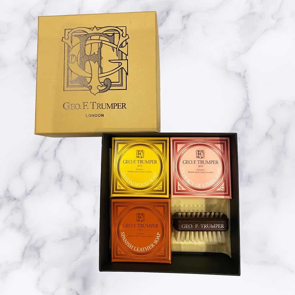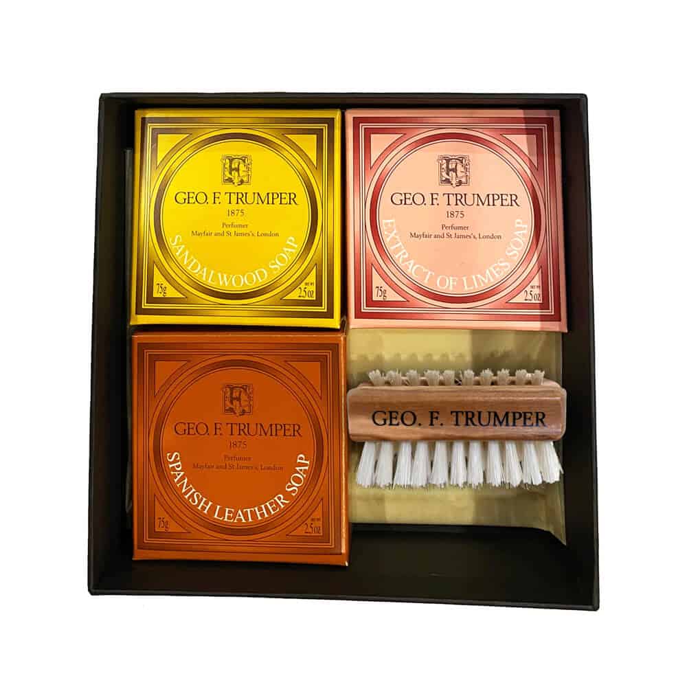 Our hand care set features a selection of three of our best selling hand soaps (Sandalwood, Extract of Limes and Spanish Leather) as well as a choice of Thermo Wood or Olive Wood small nail brush.